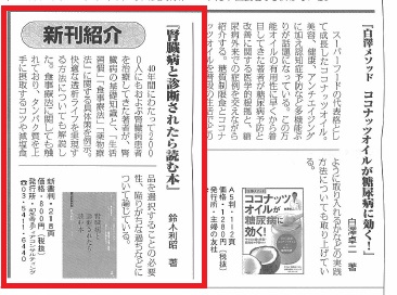 『腎臓病と診断されたら読む本』(著者:鈴木利昭)が、「健康産業新聞」(2015年6月3日号)の「新刊紹介」に掲載されました。