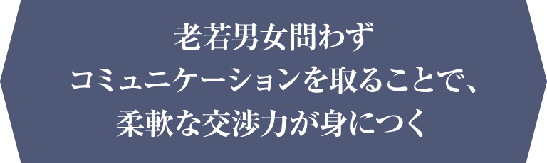 • 老若男女問わずコミュニケーションを取ることで、柔軟な交渉力が身につく