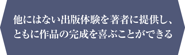 • 他にはない出版体験を著者に提供し、ともに作品の完成を喜ぶことができる