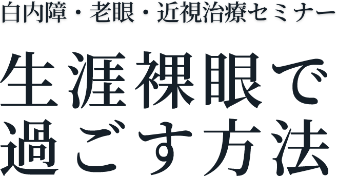 『メガネ・コンタクトレンズはもういらない!多焦点眼内レンズ入門』出版記念白内障・老眼・近視治療セミナー「生涯裸眼で過ごす方法」